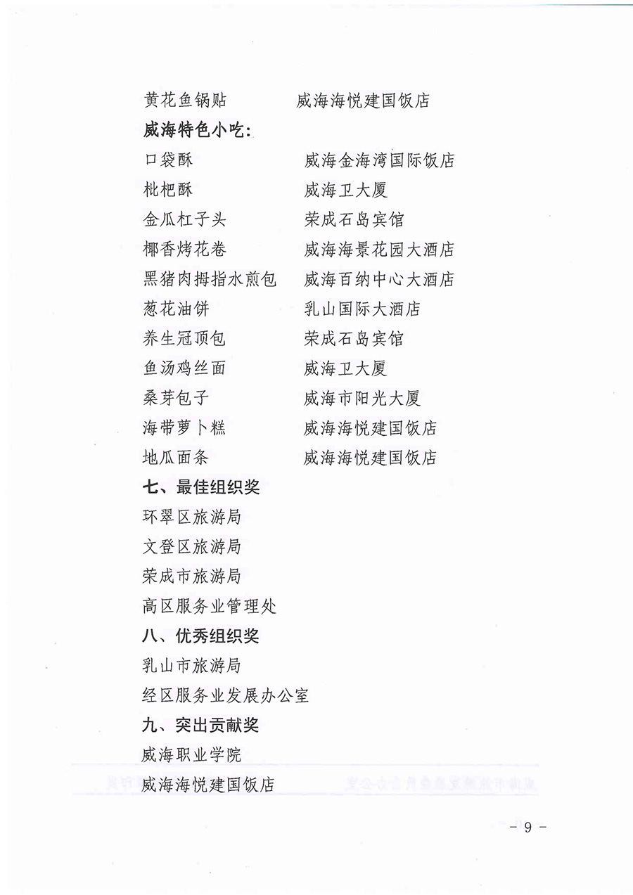 关于对威海市旅游饭店服务技能大赛获奖单位及个人进行表彰的决定